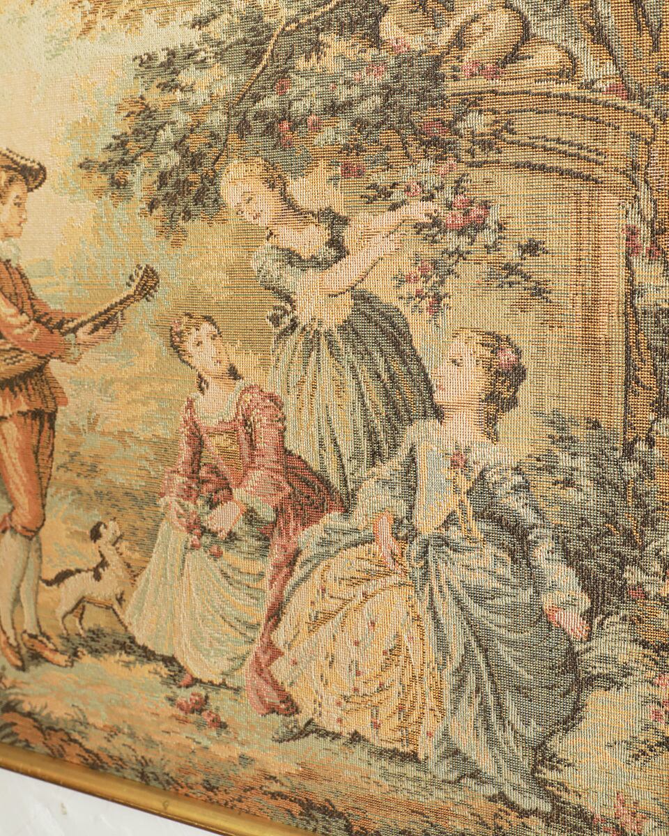 お庭で優雅に過ごす貴族たちの姿がゴブラン織りで