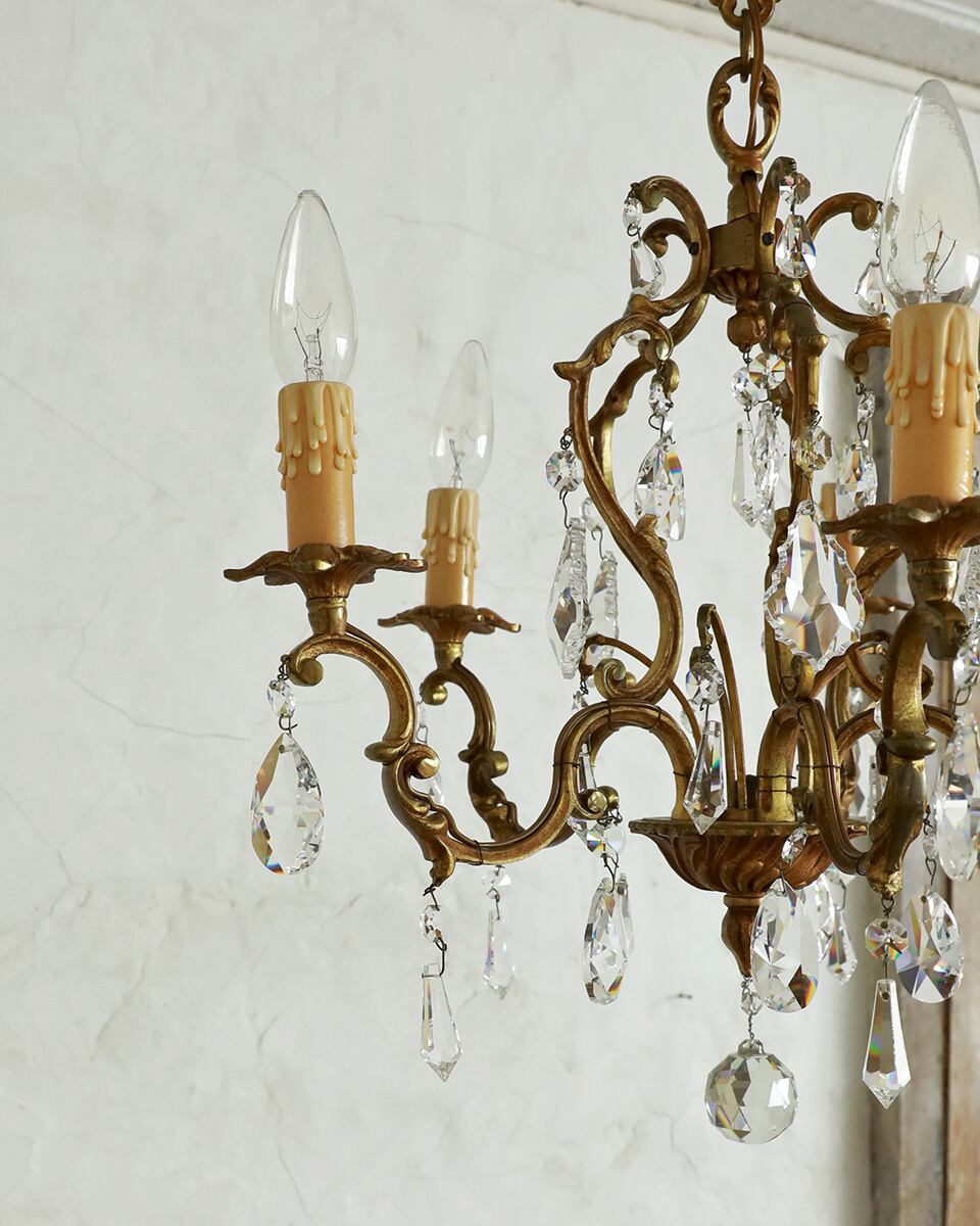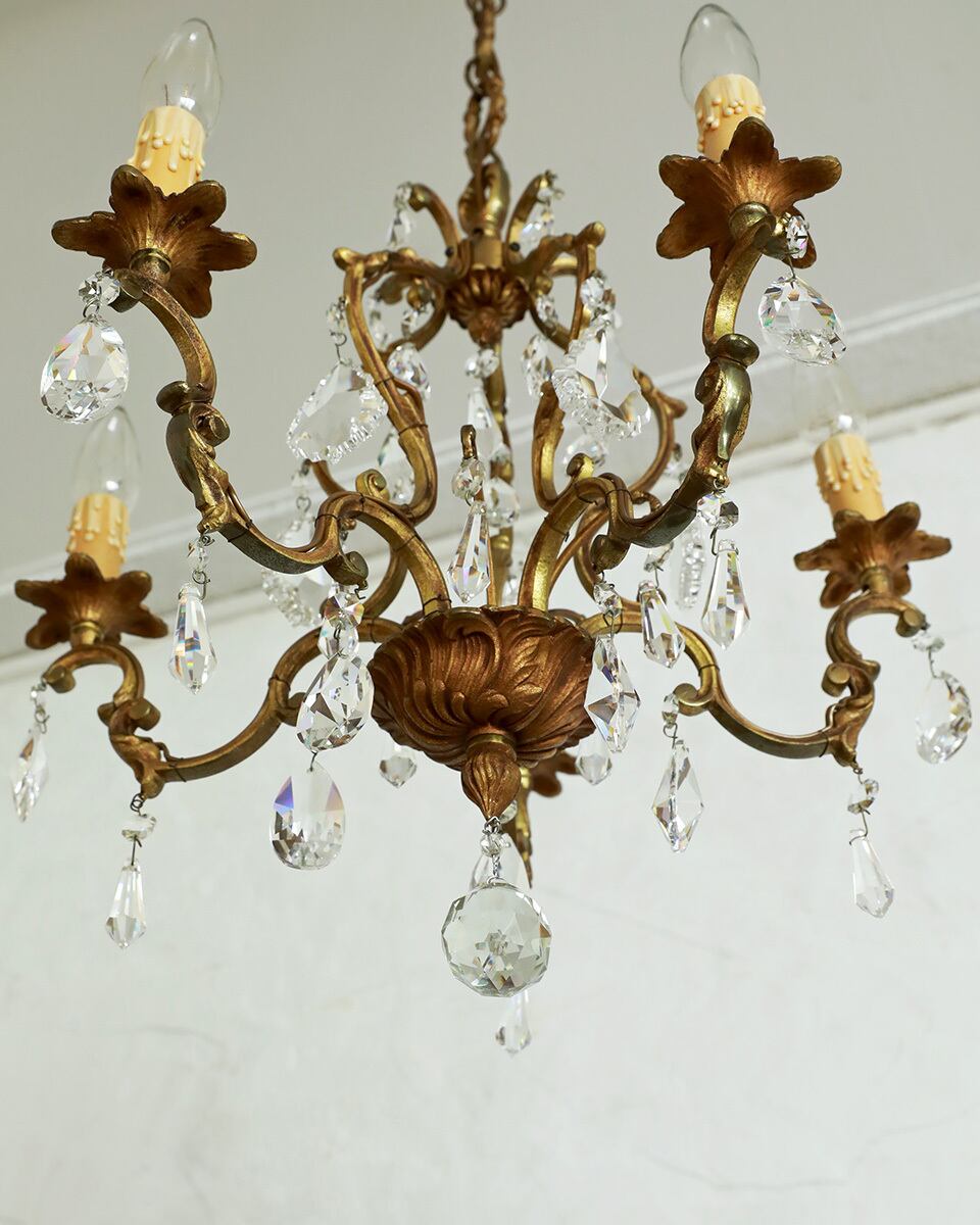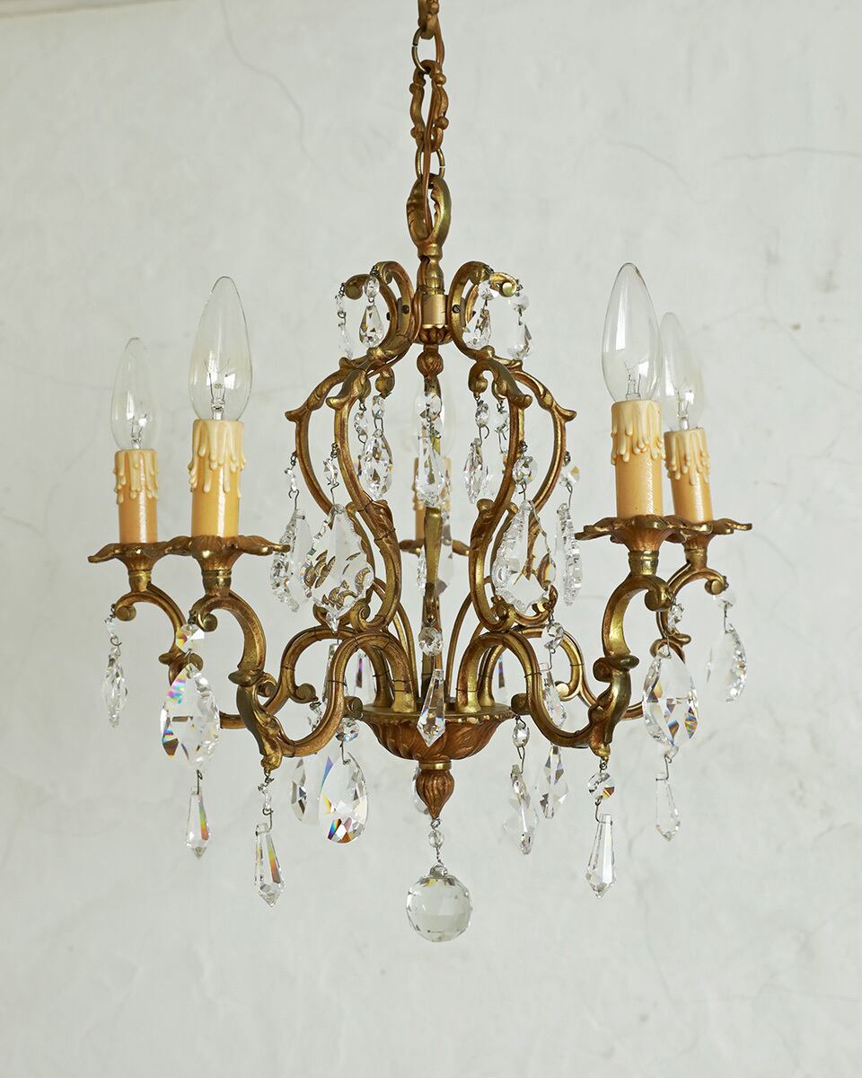 美しく輝く5灯タイプのケージ型のシャンデリアです。