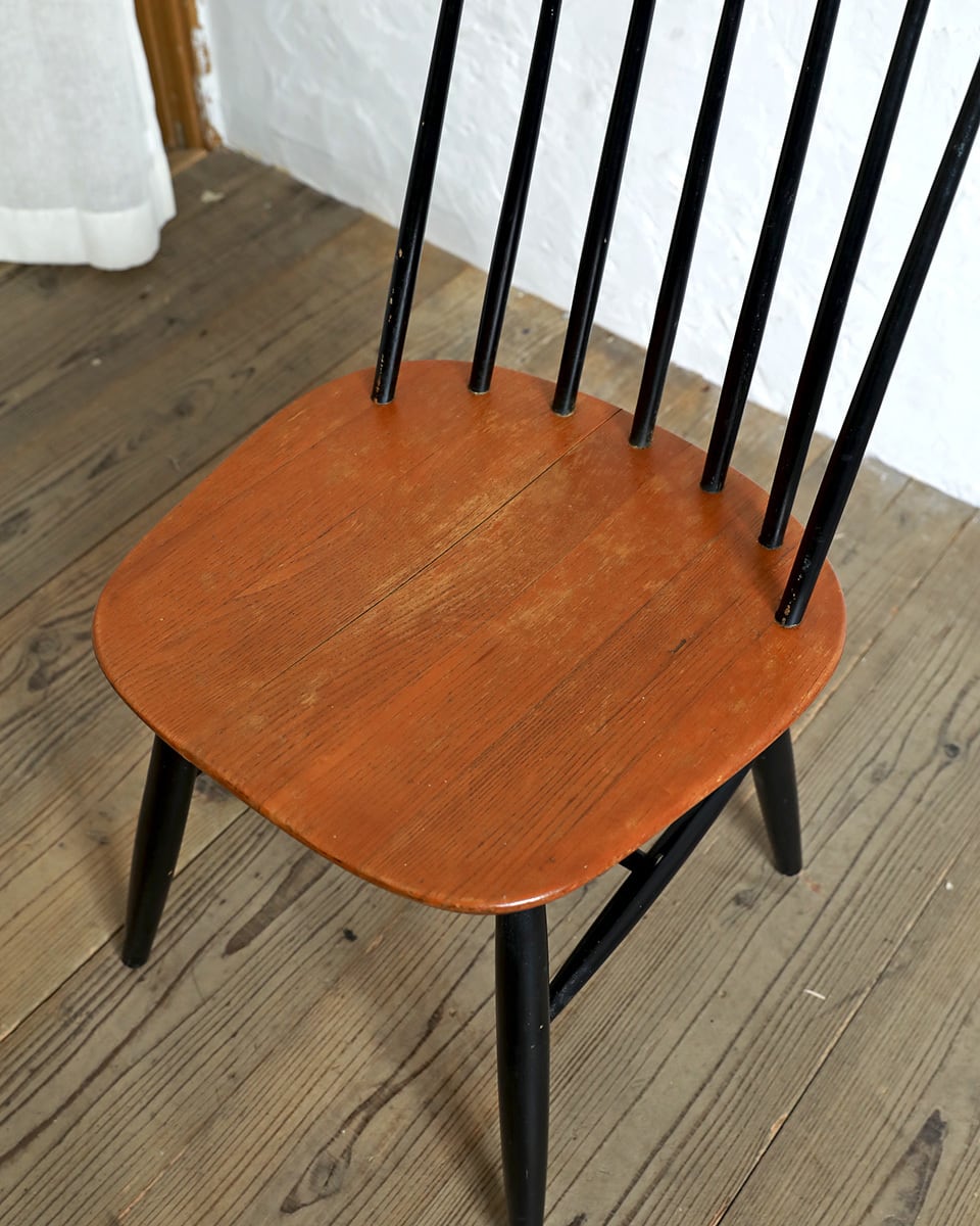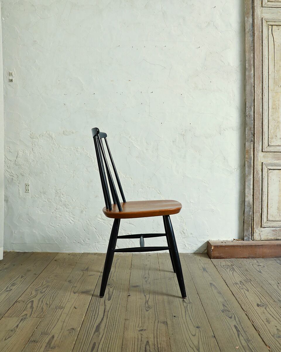 木製の座面とブラック塗装のフレームが洗練された佇まいで