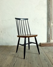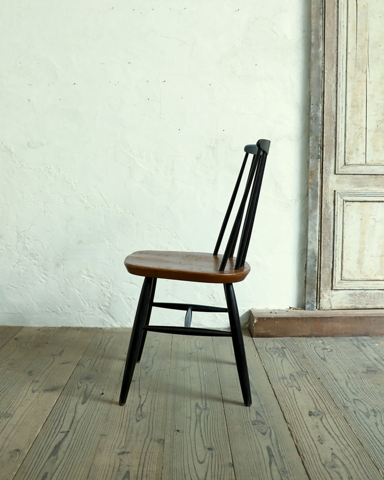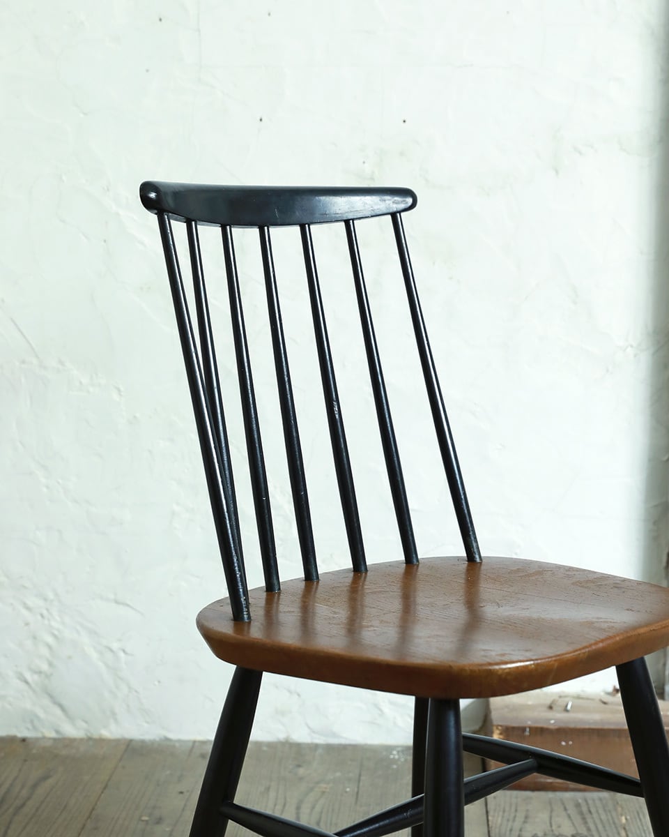 木製の座面とブラック塗装のフレームが洗練された佇まいで